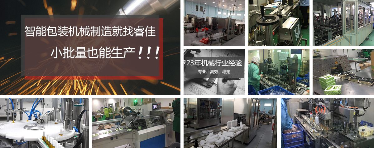 廣州市睿佳機械設備有限公司是國內專業從事自動化包裝機械產品,集研發、生產、銷售、服務于一體的制造公司,已通過ISO9001:2008質量體系認證,部分系列產品已通過歐盟CE認證。 經過多年的發展,公司專業生產:封尾機,灌裝機,旋蓋機,貼標機,包裝機,輸送機,噴碼機,灌裝生產線等機械設備。企業以開發生產包裝機械和訂做特殊包裝機械為主,所生產的包裝機械在同行和客戶中都得到一致的贊賞,以高技術和穩定的質量遠銷東南亞和歐美。在國內,也成為多家知名藥廠、食品廠、化妝品廠指定使用產品。 睿佳機械:“想客戶之所想,急客戶之所急”既是睿佳對廣大客戶的承諾也是睿佳的宗旨,睿佳將與時代同步、銳意進取,以更優質的服務回報廣大客戶對睿佳的信賴和支持。